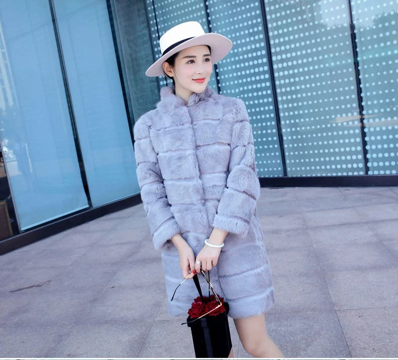 المنتجات ذات الصلة ل Winter Goods و 2018 المرأة الحقيقي الفراء أرنب معاطف الأسود فام الشتاء طويل دافئ سترة الوقوف طوق روسيا نمط نوعية جيدة الفراء أبلى الملابس