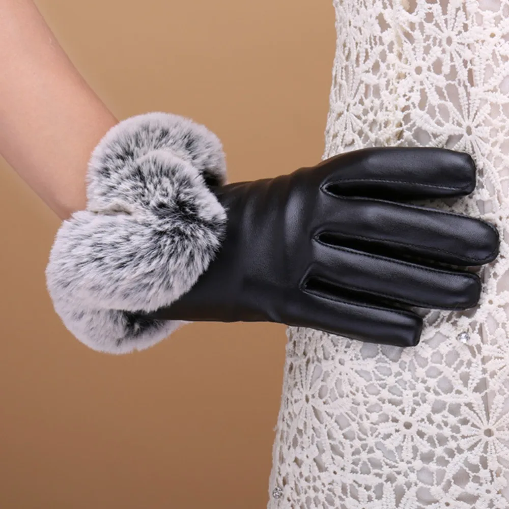 وانت porأرغب في شراء Winter Goods, entonces Kakaforsa سيدة سماكة الشتاء قفازات الأزياء الدافئة رشاقته أنيقة بو الجلود نوعية جيدة فو الفراء المعصم قفاز دافئ tal vez poner interest