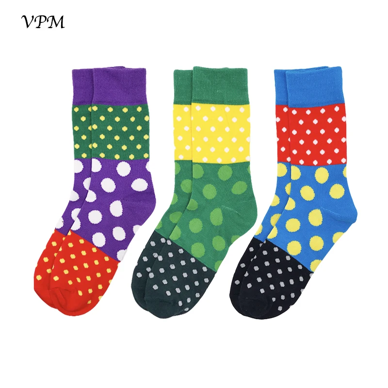 معرض ل VPM 3 زوج/وحدة بتمشيط القطن الرجال طاقم الجوارب الخريف الشتاء نوعية جيدة الملونة شريط نقطة تجارية طويلة جورب ل الذكور